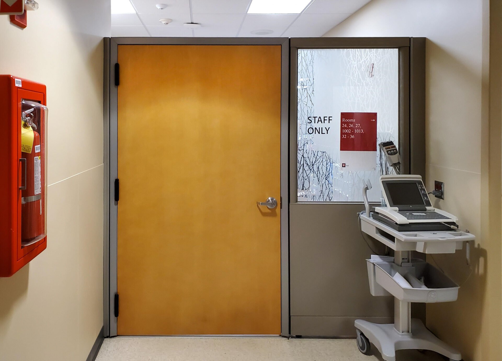 The facility’s choice to avoid self-closing hinges is therefore consistent with clinical workflow demands. They need the door to stay neutral, not fight the user.